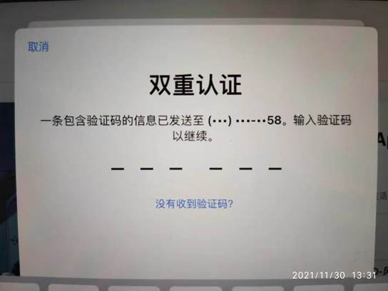 2.3)登录时如果Apple索要验证码(如下图所示),请点此击此链接获得验证码。在设备上输入,然后返回本说明继续下一步。